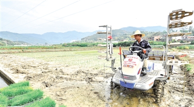 福建省闽侯县在春耕春播工作中大力推广小型农业机械化插秧新技术,提高生产效率和农业机械化水平。