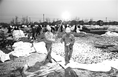 时下正值榨菜丰收季节,浙江省余姚市供电公司组织电力服务队,开展进村服务,确保榨菜收购大户用电无忧。余姚市是全国最大的榨菜生产加工基地,种植面积超过10万亩,年产榨菜“鲜头”近10亿斤。图为电力服务队队员为菜农安装临时照明灯,保证夜间收购无忧。 邬晓刚摄