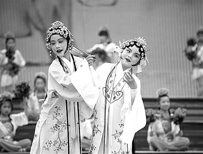 当日,在浙江省遂昌县举行的汤显祖文化节上,由遂昌县实验小学昆曲表演班16名学生扮演的杜丽娘精彩亮相。明代著名戏剧家汤显祖曾任遂昌知县。 郑雨旸摄 (新华社发)