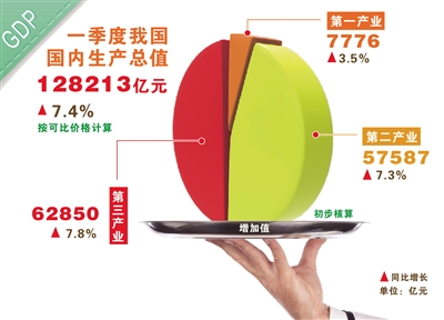 国家统计局4月16日发布一季度经济运行主要数据。据初步核算,今年一季度我国国内生产总值(GDP)128213亿元,同比增长7.4%,增速比上季度回落0.3个百分点。一季度国民经济开局平稳,总体良好。经济增速、就业、物价等主要经济指标处于年度预期目标范围,没有越出上下限,经济运行继续保持在合理区间。(详细报道见九版)