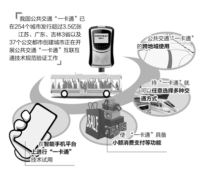 我国的公共交通“一卡通”是从1999年起步的。目前已有254个地市级以上城市发行了总数超过3.5亿张的公共交通“一卡通”。公交卡使用范围覆盖了公交、地铁、出租汽车等多种交通运输方式,应用功能扩展到小额消费支付领域。但各地公共交通“一卡通”在发展过程中,也存在标准不一、各城市间不能联通、无法实现大规模联网应用等突出问题。从全国范围看,“一卡通”还没有真正“通”起来。