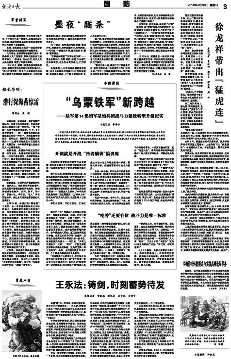 创建于陕西省富平县、驻扎在乌蒙山腹地的第14集团军某炮兵团,战火硝烟中是威震敌胆的雄师劲旅,和平年代是享誉全军的一面旗帜。近年来,团队紧紧扭住能打胜仗这个核心,形成“以战斗力为根本标准全面搞建设、着眼培育高素质官兵扎实打基础、严格依据法规制度反复抓落实”的团队建设经验,受到军委总部的褒奖,这支被誉为“乌蒙铁军”的光荣部队,在强军路上实现了新的跨越