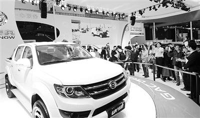左图 4月20日是北京车展媒体日,媒体记者在现场观看自主品牌新车。
