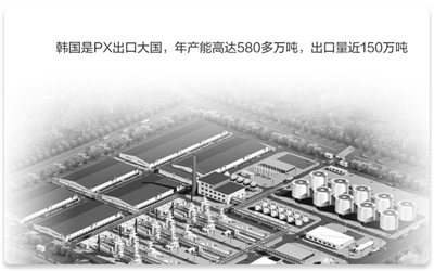 韩国PX项目集中于东南部的蔚山市、南部的丽水市和西部的大山石化园区。其中,SK蔚山园区一期PX工厂离居民区不过数百米左右,正在建设中的二期工厂离居民区也只有3公里左右。韩国的S-oil工厂离蔚山市区有15公里。大山园区距离大山邑约8公里,与最近的居民区相距不到2公里。