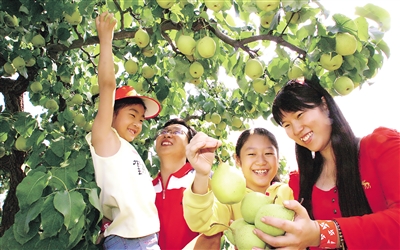 为了发展旅游经济,村集体去年从农户手中流转了1700亩土地,建立了一个1000亩的出口梨基地和500亩的设施农业,还修缮了道路,把村里的各个园子连接起来。张俊臣说,梨花村正在与大企业合作开发梨的深加工,“有梨花酒、老北京梨汤、梨花精油,这些产品市场前景好,村民可以入股,年底就能拿到股金分红。”如今,“金把黄”已是梨花村鸭梨的注册商标。