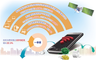 日前公布的一季度工业通信业数据显示,一季度,我国信息消费规模达到6910亿元,增长22.3%,增势强劲。