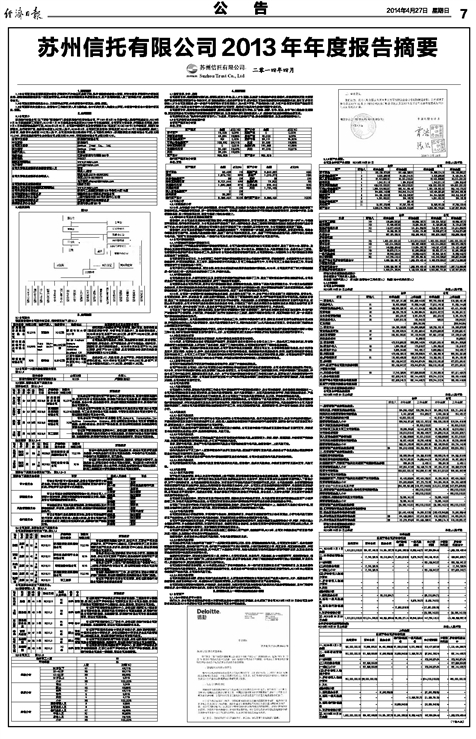 苏州信托有限公司2013年年度报告摘要