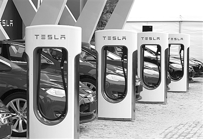 当日,美国电动汽车生产商特斯拉汽车公司在上海金桥开发区举办首批7辆新车交付仪式,新建的超级充电站也同期亮相。据介绍,位于上海金桥的超级充电站是特斯拉在中国区域兴建的第一个超级充电站。 新华社记者 丁 汀摄