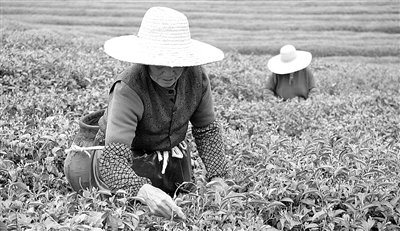 在当地农商行的信贷支持下,今年江苏张家港市金港镇高峰茶场的春茶喜获丰收。图为茶农们正在茶园采摘新茶。 王长江摄