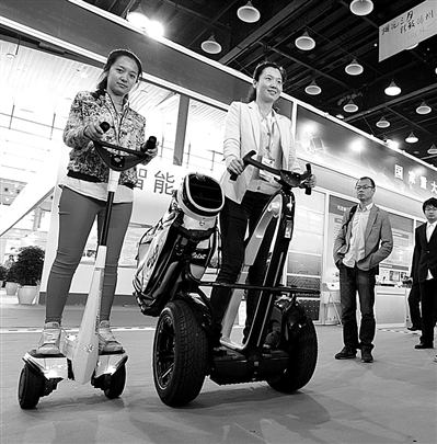 中国扬州科技合作展示洽谈会近日在江苏扬州举行。图为工作人员演示“i-Robot代步机器人”。 庄文斌摄(新华社发)