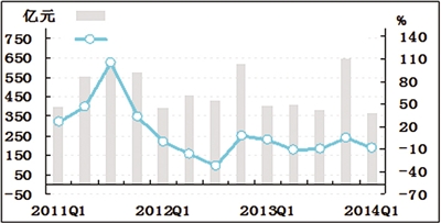 经初步季节调整,一季度有色金属行业利润总额为365.4亿元,由去年四季度的同比增长4.4%转为下降9.0%。分行业看,一季度有色金属矿采选业与有色金属冶炼及压延加工业的利润均出现同比下降。由于一季度铜等主要基本金属价格出现趋势性下跌,有色金属行业整体仍有一定的下行压力,短期内难有明显好转。