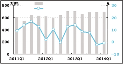 经初步季节调整,一季度乳制品产量为700.3万吨,同比下降0.9%,降幅比去年四季度收窄1.3个百分点。