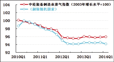 2014年一季度,中经装备制造业①景气指数为95.9(2003年增长水平=100),与去年四季度基本持平(略升0.1点),延续了去年初温和回暖的走势。