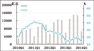 经初步季节调整,一季度装备制造业固定资产投资总额为6524.8亿元,同比增长13.2%,比去年四季度放缓6.4个百分点,在连续三个季度加快后出现回落。除汽车制造业外的六个子行业投资增长均不同程度放缓,导致装备制造业整体投资增幅的回落。