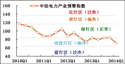 一季度,中经电力产业预警指数为70.8,比去年四季度大幅下降12.5点,从而回落至偏冷的“浅蓝灯区”。