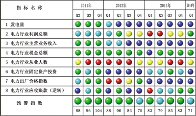 从灯号变化看,电力行业从业人数由去年四季度的红灯变为黄灯,利润总额由黄灯变为绿灯,固定资产投资由浅蓝灯变为蓝灯,其余指标预警灯号不变。