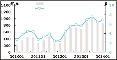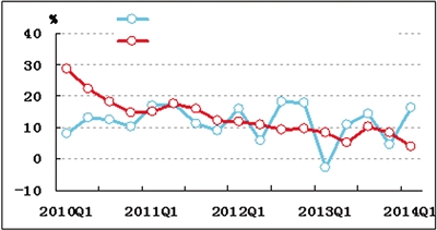 经初步季节调整,一季度电力行业主营业务收入为12735.2亿元,同比增长3.8%,增速比去年四季度回落4.6个百分点,经过连续2个季度增长放缓后,降至2011年二季度以来最低增长水平。主营业务收入增长放缓,主要由于电力需求减弱。受节能减排以及大范围“雾霾”天气影响,部分“两高”行业企业出现关停现象,相关行业生产增速回落;同时,气温偏高也影响了电力需求增长。