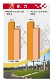 经模型测算,2014年二、三季度中经电力产业景气指数有望小幅回升,具体数值分别为99.0和99.2;预警指数未来2个季度稳中有升,具体数值为75.0和79.2。