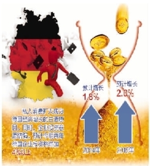 今年以来,德国经济表现出稳定增长的良好态势,德国官方和智库都对经济前景表示乐观。德国政府此前发表预测称,今年经济将有望增长1.8%,2015年将增长2%。德国副总理兼联邦经济和能源部部长加布里尔表示,德国经济目前正处在稳定上升期,今明两年经济增长将富有成效。随着职工收入增加和通货膨胀水平的降低,私人消费扩大成为德国经济增长的主要原因。与此同时,企业投资意愿增强,预计今明两年德国企业投资将增加4%以上。此外,今明两年新增就业人数将分别达24万和12万,出口分别增长4.1%和4.6%。