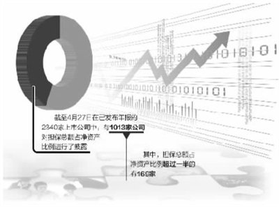据Wind数据统计显示,截至4月27日,在已发布年报的2340家上市公司中,有1013家公司对担保总额占净资产比例进行了披露。其中,169家担保总额占净资产比例超过一半。