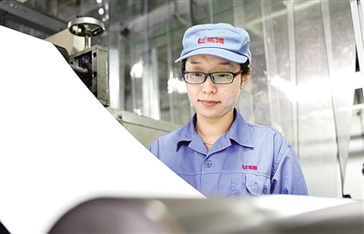 | ➡乐凯集团员工正在检查产品质量。该集团一季度营业收入同比增长12.8%,实现利润同比增长3.1倍。 |