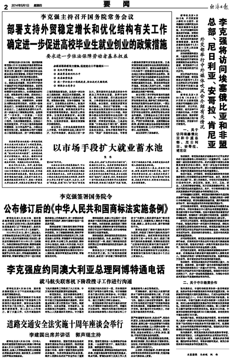 李克强将访问埃塞俄比亚和非盟 总部、尼日利亚、安哥拉、肯尼亚