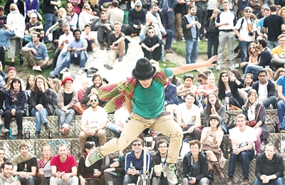 图 5月1日,在德国首都柏林,一名街头艺人在“五一”国际劳动节的庆祝活动中表演独轮车。当日,德国首都柏林举行各种活动,庆祝和纪念“五一”国际劳动节,市民尽享节日的欢乐时光。 新华社发