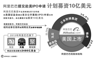 北京时间5月7日,阿里巴巴集团正式向美国证券交易委员会递交了IPO招股书,拟在纽约证券交易所或纳斯达克全球市场挂牌上市。股票交易代码、发行股票的数量和股票发行价均未确定。