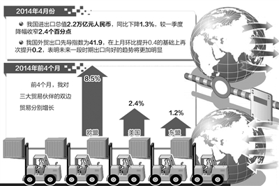 尽管“向好”是业内的普遍预期,但我国外贸形势依然不容乐观。商务部最新发布的《中国对外贸易形势报告(2014年春季)》表示,预计全年进出口有望保持相对稳定增长,但外贸面临的困难和挑战依然较多——既有经济增速换挡期带来的下行压力,也有传统产业竞争力逐步削弱、劳动力成本不断上涨的实际,以及美联储彻底退出量化宽松政策的不确定风险等等。