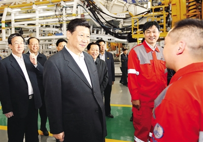 在中铁工程装备集团有限公司盾构总装车间,习近平通过模型了解盾构机整体构造和工作原理,然后登上一座85米长的盾构机装配平台,察看了装配情况。他向现场科技人员和职工问好,对他们攻克科研难题、突破盾构机系统集成技术壁垒的自主创新给予肯定。习近平指出,装备制造业是一个国家制造业的脊梁,目前我国装备制造业还有许多短板,要加大投入、加强研发、加快发展,努力占领世界制高点、掌控技术话语权,使我国成为现代装备制造业大国。一个地方、一个企业,要突破发展瓶颈、解决深层次矛盾和问题,根本出路在于创新,关键要靠科技力量。要加快构建以企业为主体、市场为导向、产学研相结合的技术创新体系,加强创新人才队伍建设,搭建创新服务平台,推动科技和经济紧密结合,努力实现优势领域、共性技术、关键技术的重大突破,推动中国制造向中国创造转变、中国速度向中国质量转变、中国产品向中国品牌转变。