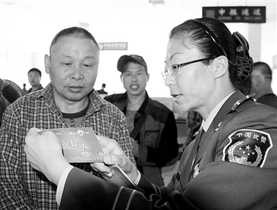 内蒙古二连浩特公安边防检查站近日开通了“外出务工人员专用通道”,并向出国务工人员发放温馨提示卡。 郭鹏杰摄