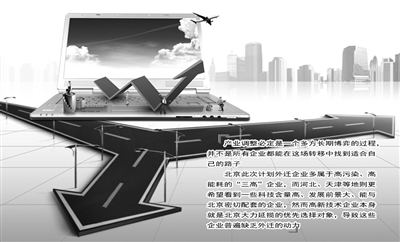当然,产业调整必定是一个多方长期博弈的过程,有企业愿意搬迁,就有企业不乐意,并不是所有企业都能在这场转移中找到适合自己的路子。北京此次计划外迁的企业多属于高污染、高能耗的“三高”企业,而河北、天津等地则更希望看到一些科技含量高、发展前景大、能与北京密切配套的企业前来落户。然而,高新技术企业本身就是北京大力延揽的优先选择对象,这些企业普遍缺乏外迁的动力。