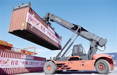 “长安号”国际货运班列2013年11月底在西安国际港务区开通,仅仅5个月后,这趟来往于古丝路沿线中亚各国的列车,已经成为丝绸之路经济带上最受欢迎的经贸交流“新使者”。图为工作人员在整理即将装载到“长安号”上的货物。