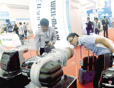 5月13日,观众在参观暖通和给排水新产品。当日,2014中国(北京)国际供热通风空调、卫生洁具及城建设备与技术展览会开幕,吸引了25个国家和地区的950家参展商参展。 本报记者 赵 晶摄