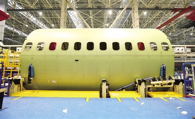 上图 C919大型客机首个前机身大部段照片。 (资料图片)