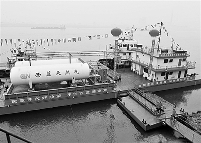 这是5月18日在湖北宜都红花套镇拍摄的船用天然气加气站。当日,西蓝天然气宜都长江“四合一”调峰站在湖北省宜都市红花套镇建成投产。这是长江中上游第一座可用于船舶的加气站。 曹礼达摄(新华社发)