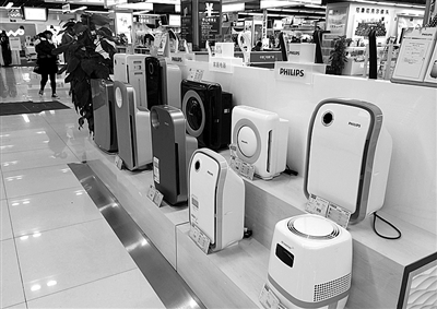 近日,记者走访大中电器、苏宁电器等电器城时发现,空气净化设备不仅都摆放在商城的醒目位置,而且品牌、功能繁多,更不乏光触媒、紫外灯、负离子等“高端”技术。在北京市朝阳区西三环中路大中电器中塔店,一下扶梯记者就看见写有“店长推荐”、“热门人气”促销字样的标牌区,吸引不少消费者驻足。数十种大大小小的空气净化器码放得非常醒目,集尘滤网型、双重净化型等等,价格也从1000元到近万元不等。