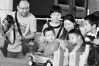 图为中科院自动化研究所在公众开放日展示遇障即停的智能交通车。