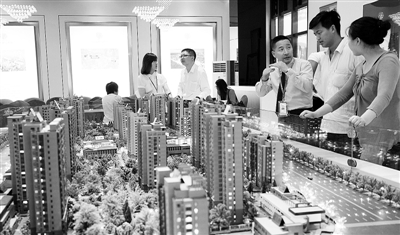 5月24日,位于北京东坝焦庄路的福润四季项目部,市民观看楼盘模型。该项目是北京大型保障房项目,将于今年6月竣工,届时北京又将有3562户低收入家庭喜迁新居。当天,作为该保障房项目的商业配套开始启动招商,将为周边居民带来便利的生活服务。 本报记者 赵 晶摄