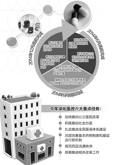 日前,国务院办公厅印发《深化医药卫生体制改革2014年重点工作任务》,提出6方面共31项医改工作任务。这些任务安排坚持以群众反映突出的重大问题为导向,以公立医院改革为重点,推动医改向纵深发展,用中国式办法破解医改这个世界性难题——