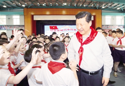 新华社北京5月30日电 (记者李斌 霍小光) 在“六一”国际儿童节即将到来之际,中共中央总书记、国家主席、中央军委主席习近平5月30日上午来到北京市海淀区民族小学,参加学校少先队主题队日活动,了解学生们学习和课余活动、特别是学校开展多种活动积极引导学生培育和践行社会主义核心价值观方面的情况。他首先向全国广大少年儿童祝贺节日,强调少年儿童是祖国的未来,是中华民族的希望。各方面要共同努力,让社会主义核心价值观的种子在少年儿童心中生根发芽、真正培育起来。