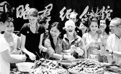 | 6月1日,来自美国、加拿大、荷兰的游客在湖北兴山县昭君村旅游景区和中国游客一起包粽子。端午假日期间,该景区通过举办丰富多彩的文化活动,向游客展示与端午有关的传统习俗。 |