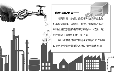一份对湖南常德、永州、娄底等八地(以下简称“八地”)的调查结果显示,在湖南银监局引导下,截至今年2月末,八地银行业金融机构投向钢铁、电解铝、水泥、焦炭等产能过剩行业贷款余额较去年8月末减少4.1亿元,过剩产能较去年8月下降1290万吨。银行业推进过剩产能消化和转移191.2万吨,过剩产能企业兼并重组20家,退出淘汰34家。
