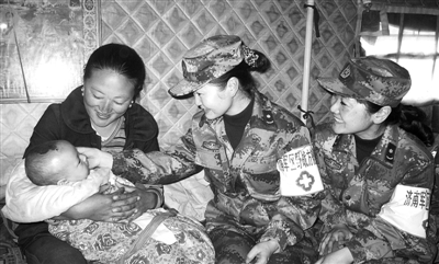 藏族汉子差格十分庆幸,他的儿子拉秀军玉是大灾中“金珠玛米菩萨医生”接生的第一个婴儿。那是4月21日下午,他几经辗转把早已过了孕产期的妻子塔拉送到方舱医院。由于语言不通和生育习俗差异,塔拉情绪烦躁,不配合接生,母婴随时都有生命危险。张红娟强压着心头焦急,连说带比划耐心劝导,终于使塔拉安静下来。6个小时后,野战方舱第一个新生儿响亮的啼哭,划破了玉树沉重的夜空。那一刻,粗壮的汉子激动之情无以言表,他一个劲儿鞠躬,还真诚地请张红娟给儿子起个名。“就叫‘军玉’吧,解放军和玉树藏族同胞心连心。”