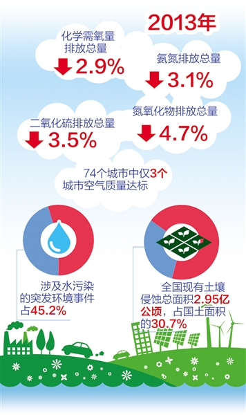 6月4日,由环保部会同国土资源部、水利部等共同编制的《2013中国环境状况公报》发布。《公报》显示,全国环境质量状况总体有所改善,但生态环境保护形势依然严峻。