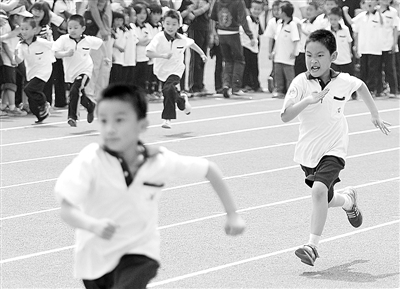 北京奋斗小学的小运动员们各显神通。摄影:李景录