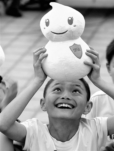 云南昆明市晋宁县昆阳镇小学举办“顶球”活动。