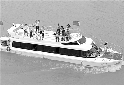 6月9日,在淮河江苏省盱眙段,游客乘坐游船饱览沿途风光。当日,江苏省淮安市盱眙县正式开通首条淮河水上旅游航线。盱眙是淮河的末端,也是洪泽湖的入水口。当地根据其特殊的地理位置,精心打造18公里长的水上旅游线路。 周海军摄(新华社发)