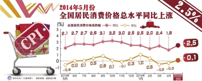 国家统计局10日发布的全国居民消费价格指数(CPI)和工业生产者出厂价格指数(PPI)数据显示,5月份,CPI环比小幅上涨0.1%,同比涨幅有所扩大,上涨2.5%;PPI环比下降0.1%,同比降幅继续收窄至1.4%。当前我国物价总水平基本保持稳定,仍运行在合理区间,与经济增速基本匹配,符合宏观调控预期。