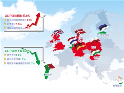 总的看来,欧盟经济在今年第一季度之所以能够保持复苏势头,主要得益于欧盟主要经济体德国和英国经济的良好表现。相比之下,荷兰、爱沙尼亚、葡萄牙等国的经济出现负增长,在一定程度上拖累了欧盟经济复苏。统计数据显示,在欧盟成员国中,今年第一季度匈牙利和波兰的国内生产总值环比增幅最大,均为1.1%;其次是丹麦,环比增幅为0.9%;德国和英国并列第三,环比增幅均为0.8%。今年第一季度,荷兰的国内生产总值环比跌幅最大,为1.4%;爱沙尼亚排列第二,环比跌幅为1.2%;葡萄牙和塞浦路斯并列第三,环比跌幅均为0.7%。统计数据表明,欧盟成员国的经济增长速度仍因国而异,复苏进程并不平衡,受危机冲击最为严重的成员国仍未走出经济衰退,这就加大了欧洲央行调整货币政策的难度。
